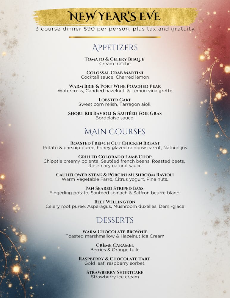 8.30pm - 11pm 3 Course Prix fixe Dinner Menu