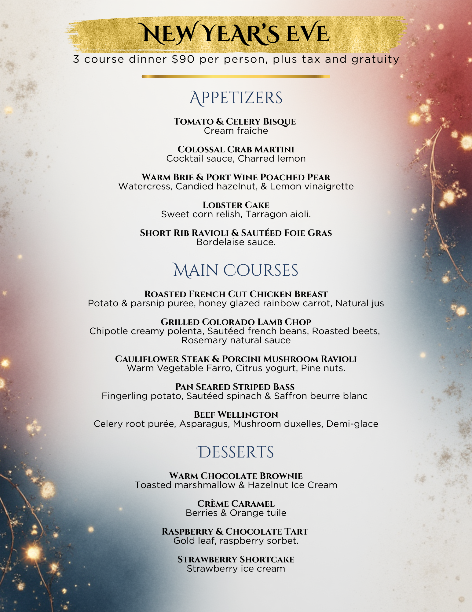 $90 per person, plus tax & gratuity