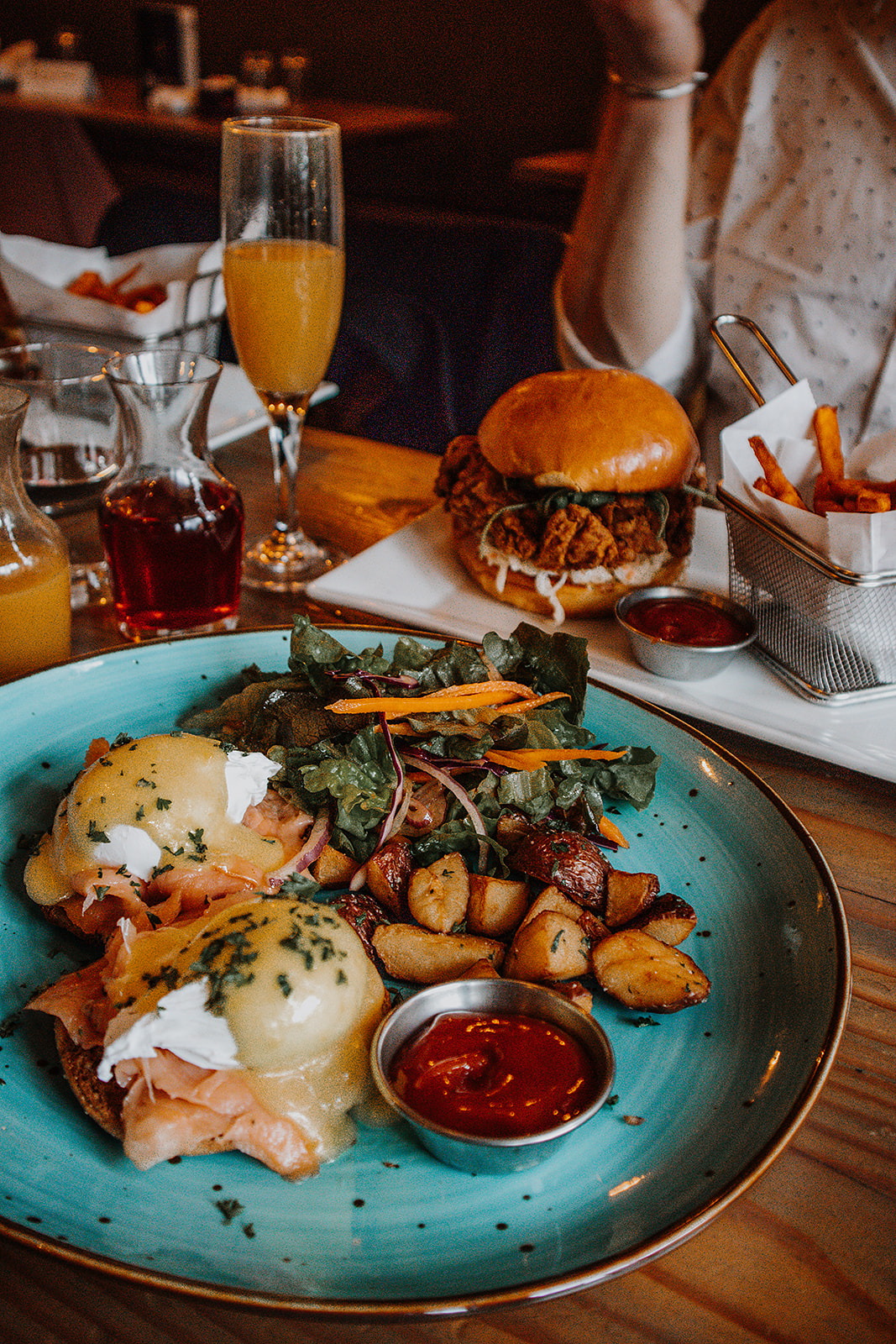 The best brunch spots earn regulars through repetition. A dish that comes out the same way every time. A room that does not rush you. The Ellington brunch menu is built around specific ingredient choices — tasso ham, chipotle hollandaise, apple bacon — a mimosa deal that puts the build in your hands, and a Saturday afternoon pace that suits the neighbourhood.
